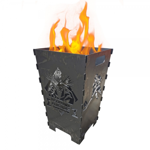 Feuerkorb wird aus 4 Teilen zusammengesteckt (je 2x Spieler Motiv und 2x Logo)